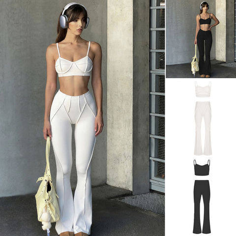 Set Yoga tinta unita in due pezzi completo Leggings svasati e Top sportivo